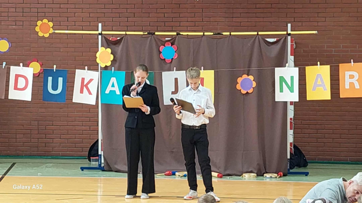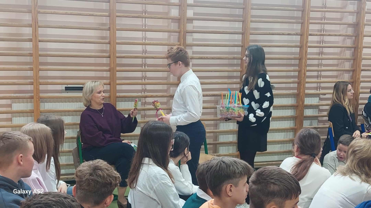 Podczas uroczystości nie zabrakło serdecznych życzeń, słów uznania oraz pięknych występów artystycznych przygotowanych przez uczniów z Samorządu Uczniowskiego.