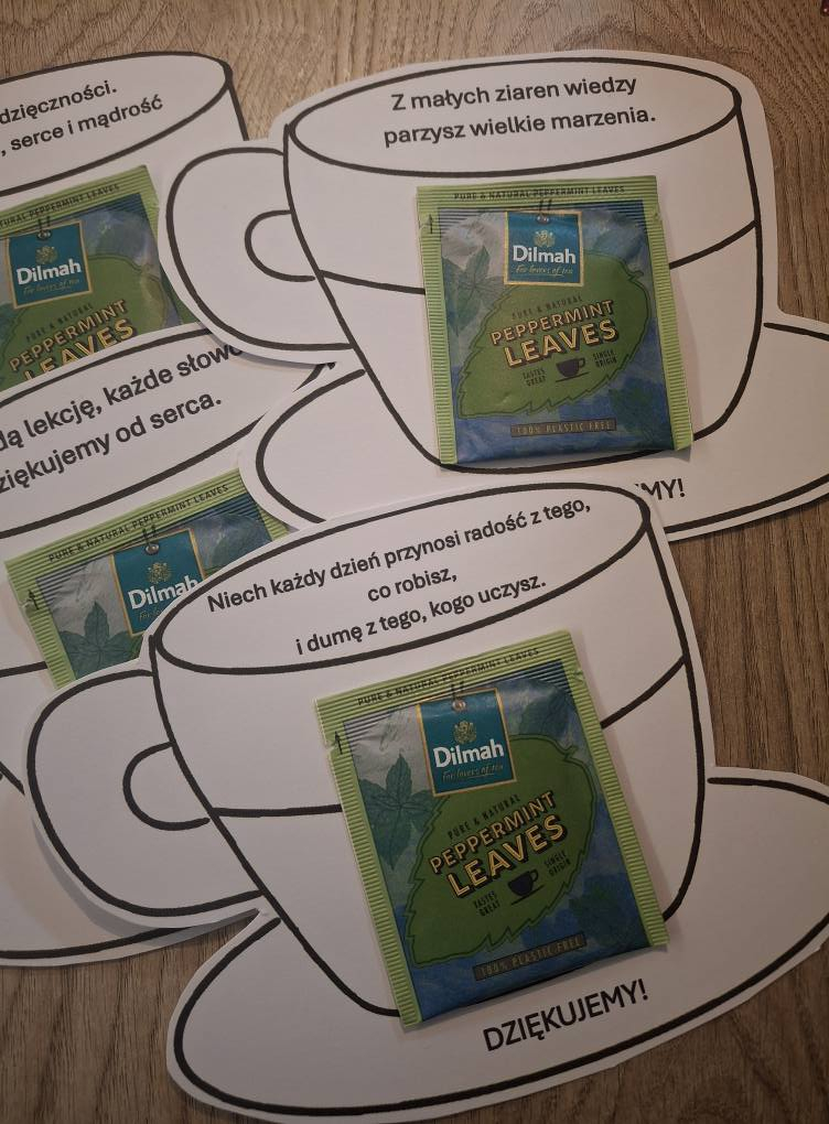 W wyjątkowy nastrój wprowadziła wszystkich symboliczna „kawiarenka wdzięczności”, w której uczniowie częstowali nauczycieli filiżankami pełnymi ciepła, uśmiechu i podziękowań – za codzienny trud, cierpliwość i serce wkładane w wychowanie młodego pokolenia.