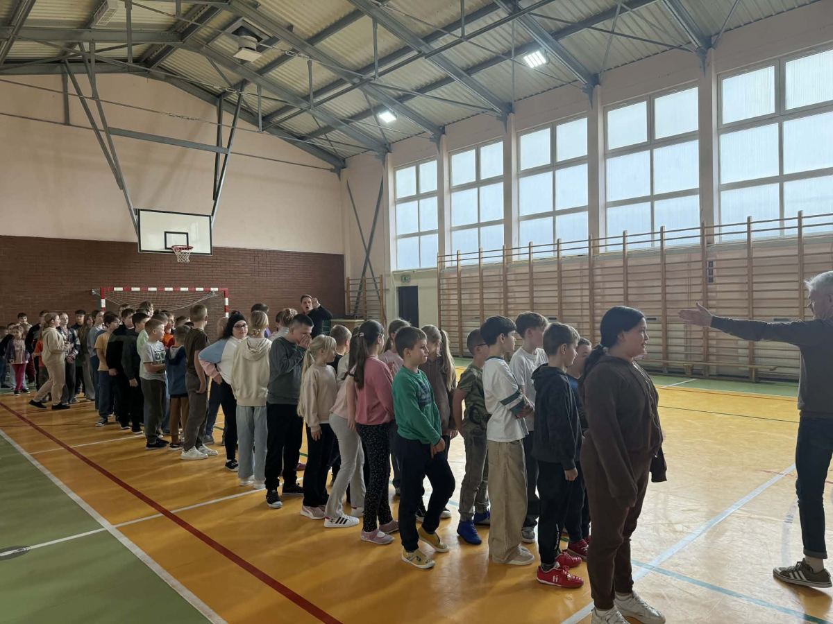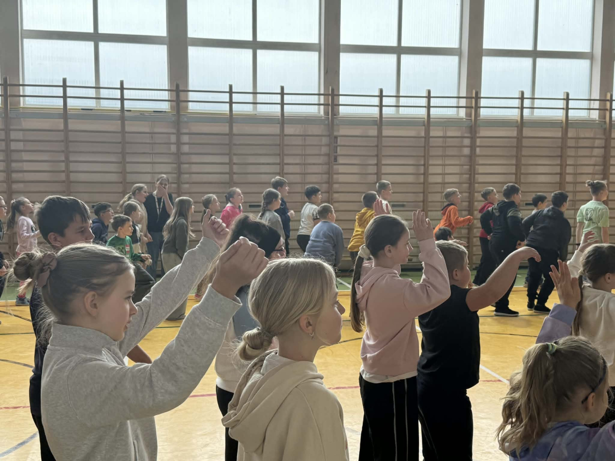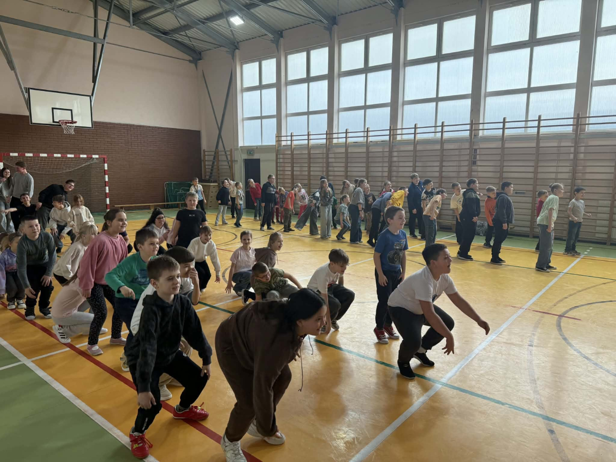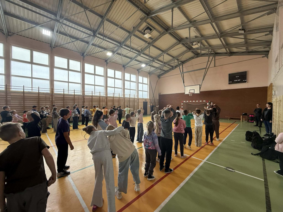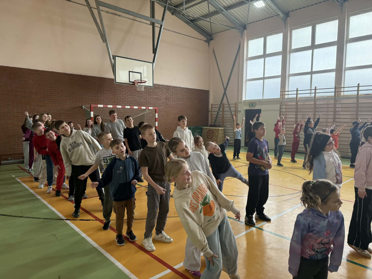 Kolejną aktywnością była PRZERWA RUCHOWA. Nauczyciele wychowania fizycznego zebrali społeczność uczniowską na sali gimnastycznej i przy dźwiękach rytmicznej muzyki przeprowadzili warsztaty ruchowe. Było wesoło i gwarnie. Wszyscy świetnie się bawili przy wykonywaniu nietypowych ćwiczeń. Tym sposobem kolejny dzień dał pozytywną energię uczniom .