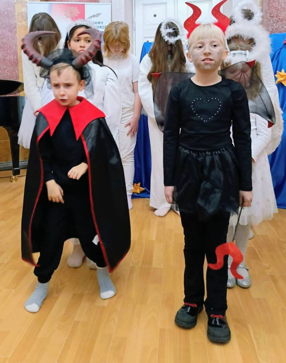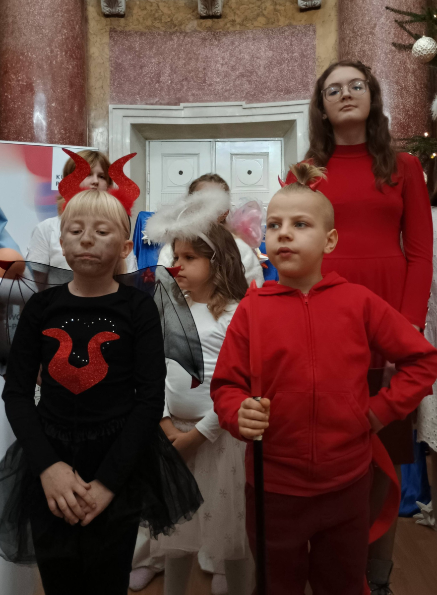 W minioną niedzielę w Pałacu Lubostroń odbyło się "Spotkanie świąteczne dla dzieci", dzięki czemu i nasz Teatr Muzyczny miał możliwość zaprezentowania dla najmniejszych widzów przedstawienia pt. "Świąteczny pojedynek". Diabeł czy anioł zwyciężył w tej potyczce? Odpowiedź jest oczywista. Anioły wyśpiewały, że dobro triumfuje!