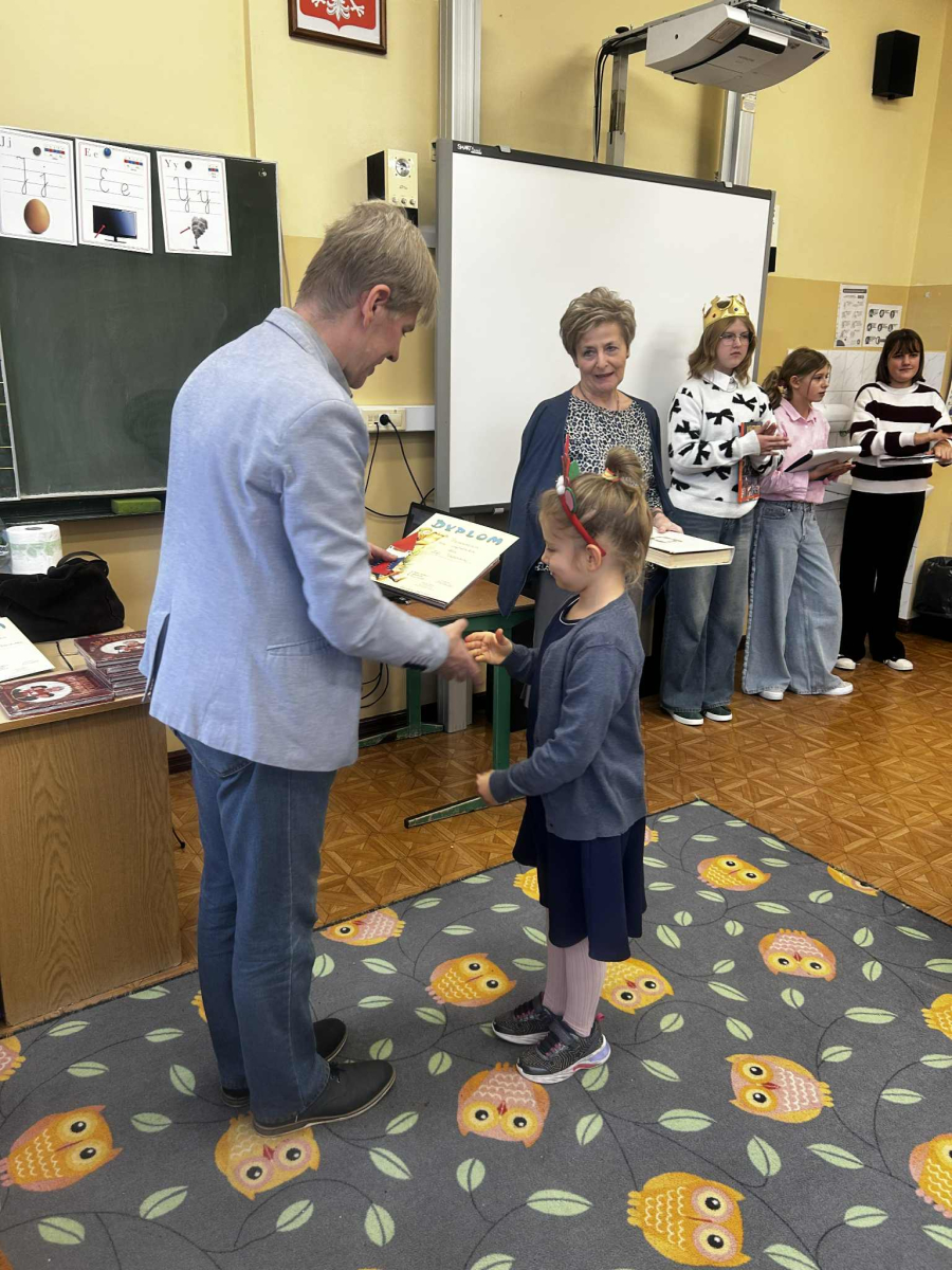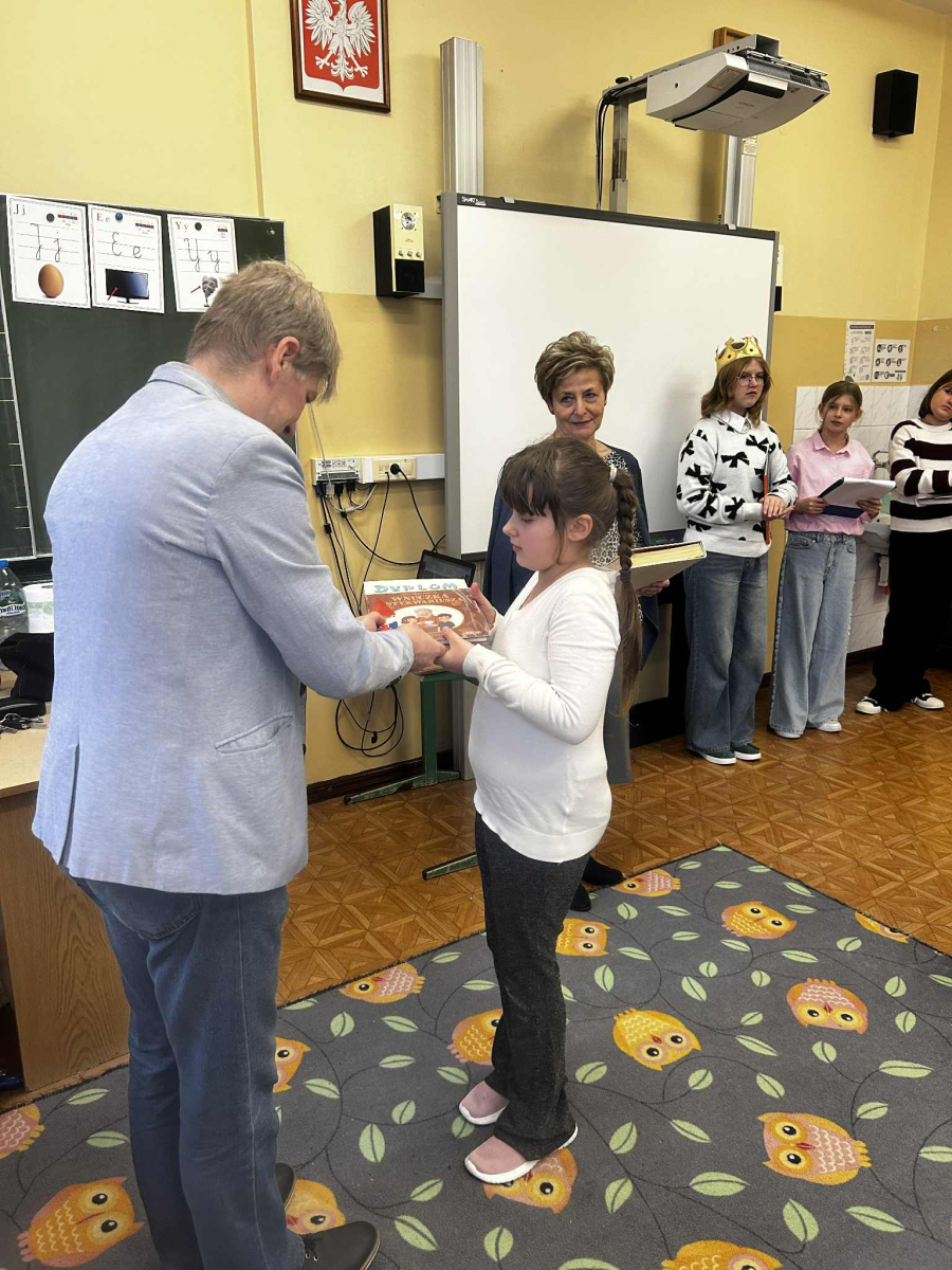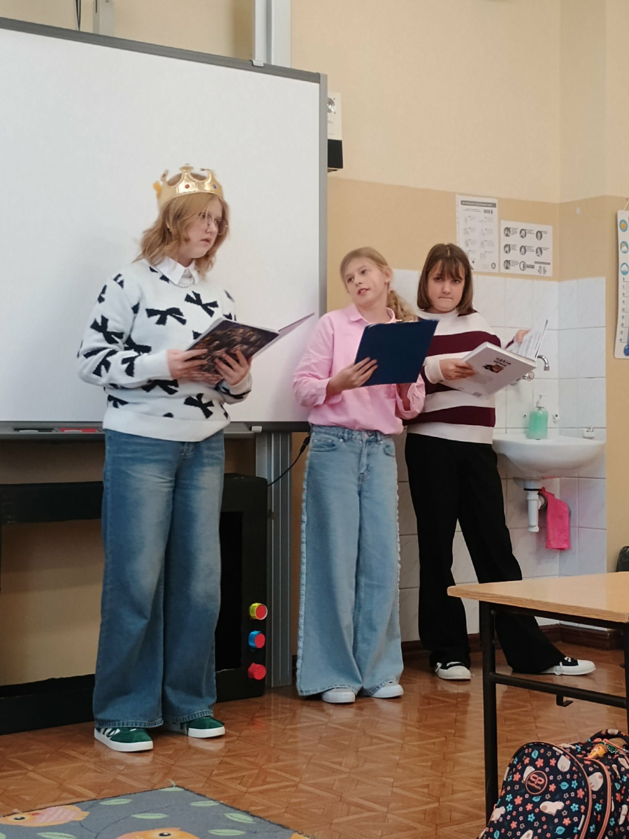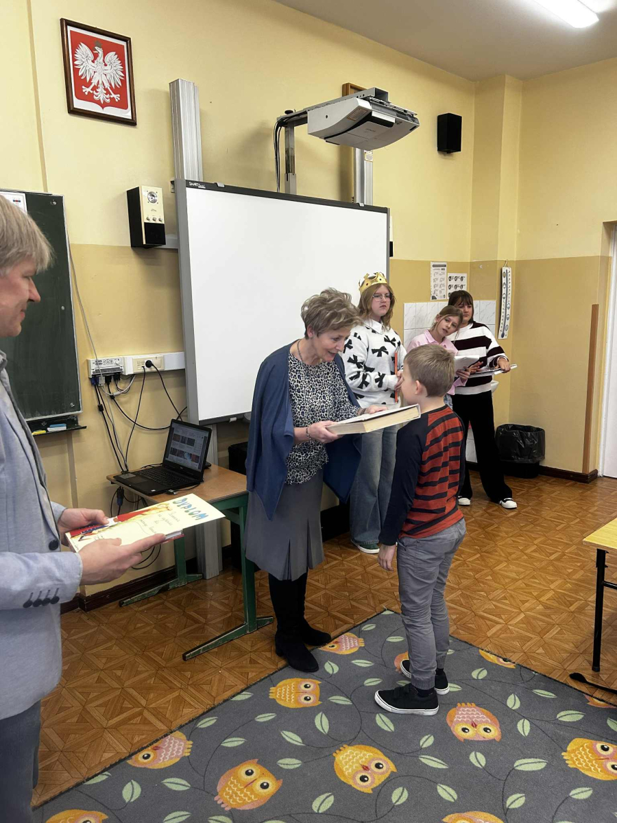"Posłuchaj koleżanko, kolego posłuchaj, czytanie jest dla głowy jak deser dla brzucha" - takie słowa wyśpiewali nasi Pierwszoklasiści, którzy zostali dziś pasowani na czytelników, wskutek czego stali się pełnoprawnymi użytkownikami szkolnej biblioteki. Zanim Pani Dyr. E. Kaczmarek dokonała specjalnym egzemplarzem "Pana Tadeusza" aktu pasowania, młodzi czytelnicy zapoznali się z regulaminem biblioteki, wysłuchali programu przygotowanego przez starsze koleżanki w tym próśb Królowej-Książki dotyczących właściwego szanowania książek i zdali symboliczny test ze znajomości bajkowych postaci. Wszyscy pasowani otrzymali w prezencie książkę-wyprawkę, okolicznościowy dyplom i zakładkę. Wszystko to działo się w obecności Wychowawcy klasy, Nauczycieli wspomagających, a także Nauczycieli-bibliotekarzy, którzy przygotowali dzisiejsze wydarzenie.