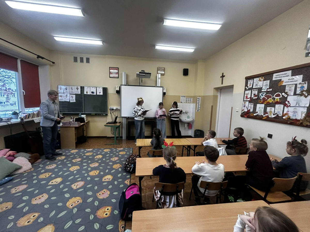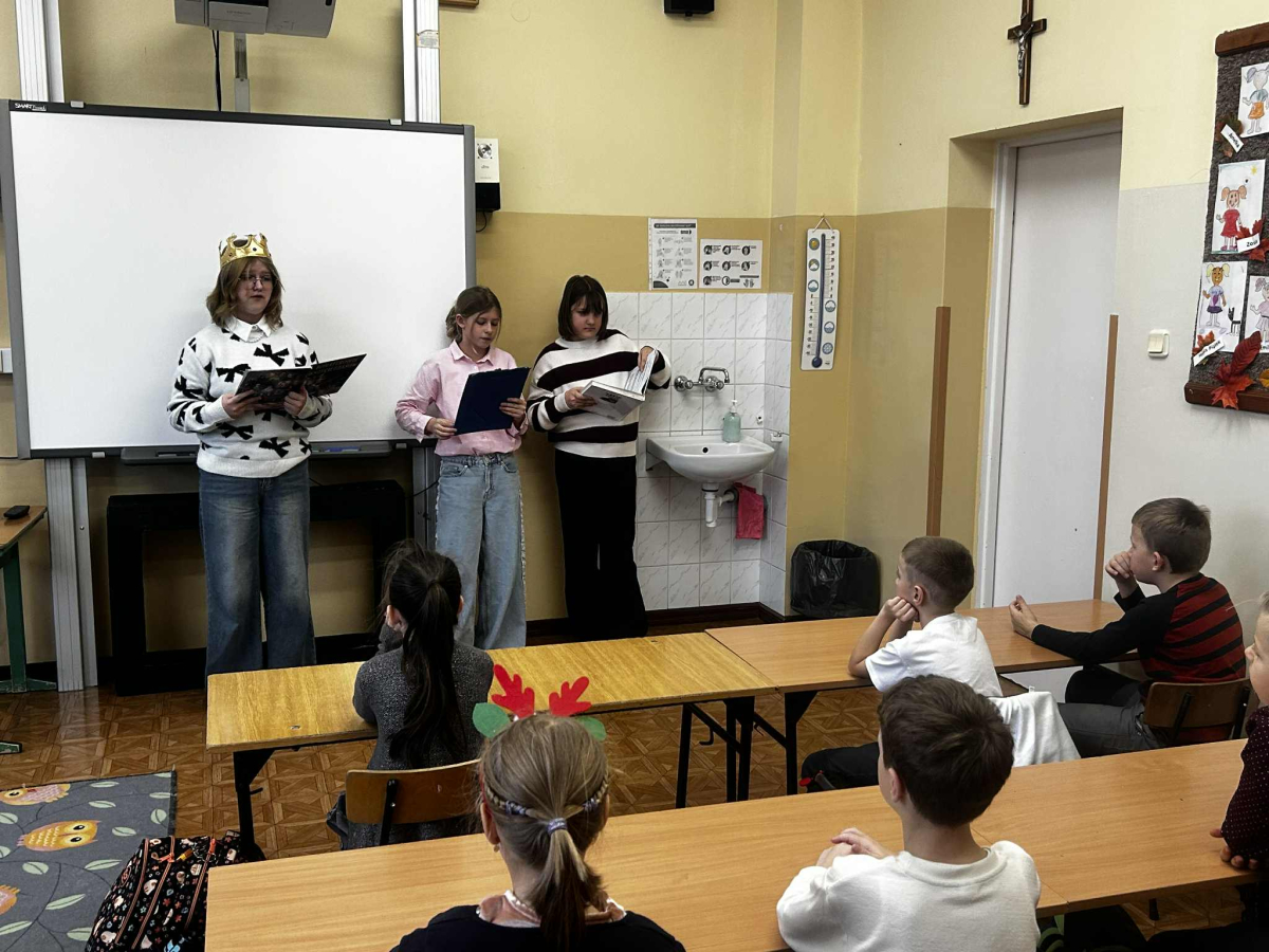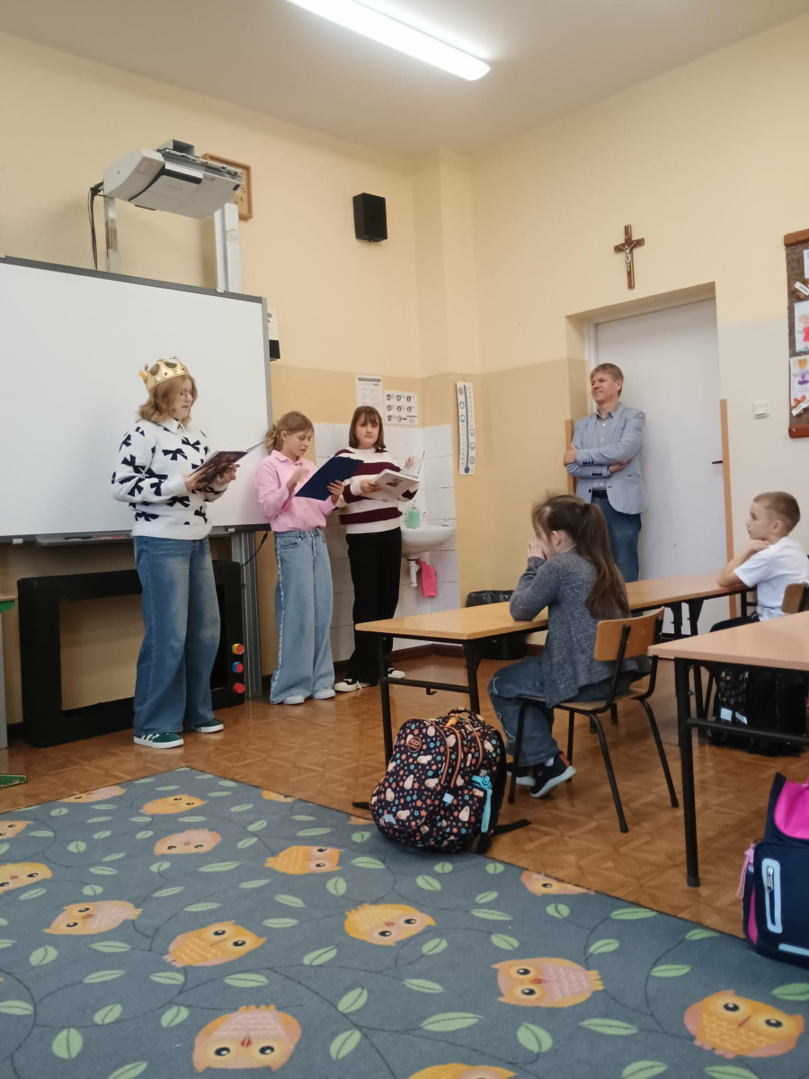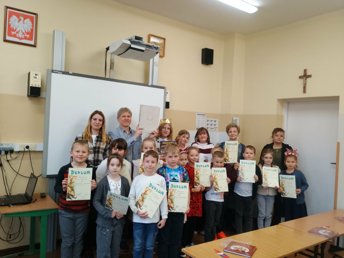 "Posłuchaj koleżanko, kolego posłuchaj, czytanie jest dla głowy jak deser dla brzucha" - takie słowa wyśpiewali nasi Pierwszoklasiści, którzy zostali dziś pasowani na czytelników, wskutek czego stali się pełnoprawnymi użytkownikami szkolnej biblioteki. Zanim Pani Dyr. E. Kaczmarek dokonała specjalnym egzemplarzem "Pana Tadeusza" aktu pasowania, młodzi czytelnicy zapoznali się z regulaminem biblioteki, wysłuchali programu przygotowanego przez starsze koleżanki w tym próśb Królowej-Książki dotyczących właściwego szanowania książek i zdali symboliczny test ze znajomości bajkowych postaci. Wszyscy pasowani otrzymali w prezencie książkę-wyprawkę, okolicznościowy dyplom i zakładkę. Wszystko to działo się w obecności Wychowawcy klasy, Nauczycieli wspomagających, a także Nauczycieli-bibliotekarzy, którzy przygotowali dzisiejsze wydarzenie.