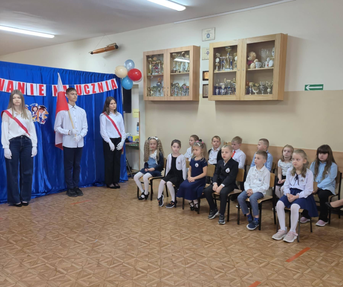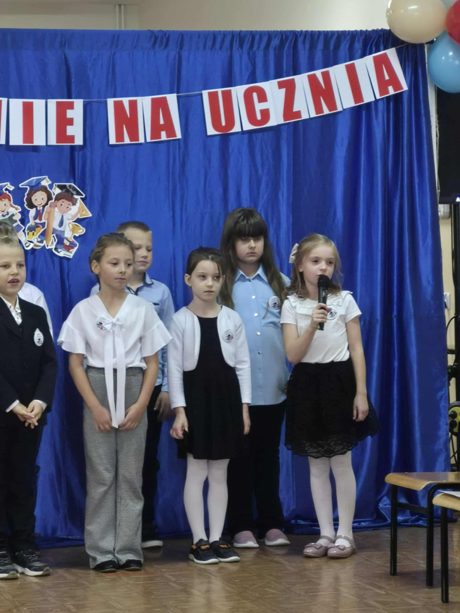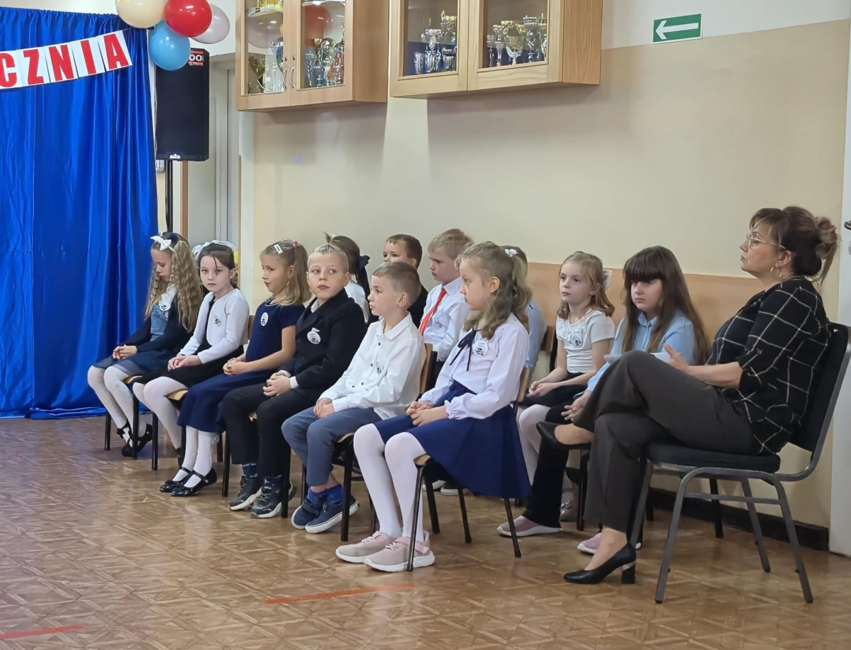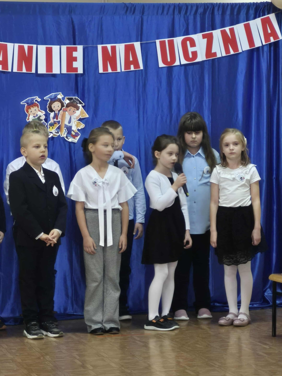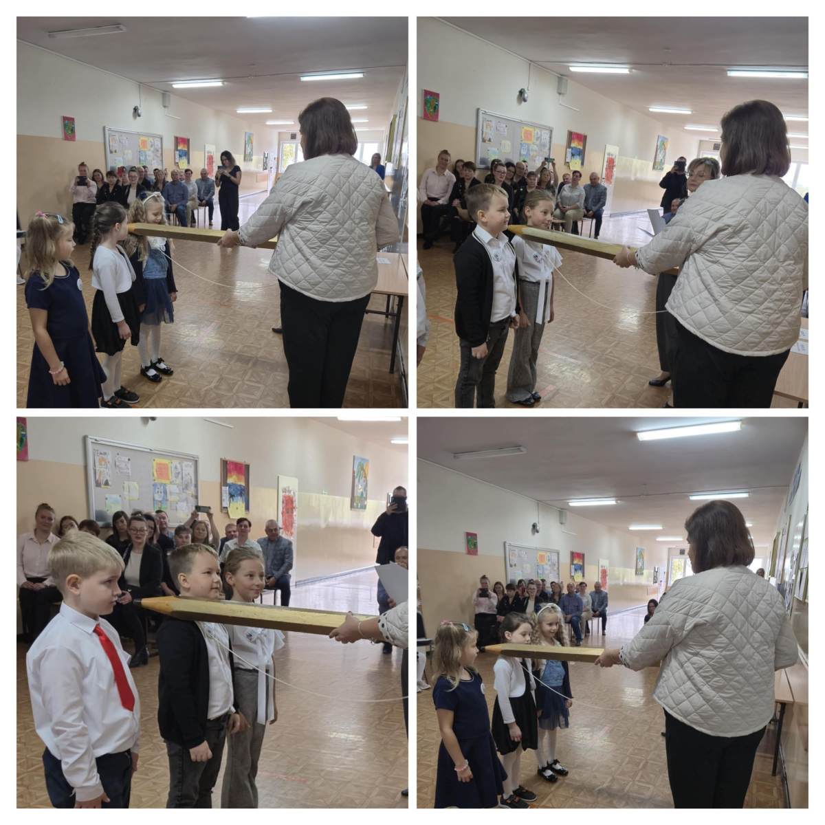 Dzisiaj dla klasy I wielkie święto! Pierwszoklasiści zostali pasowani na pełnoprawnych uczniów naszej szkoły. Dzieci odświętnie ubrane, skupione, z wielką powagą potraktowały swoją uroczystość, a na zakończenie w prezencie dla wszystkich widzów pierwszoklasiści zaprezentowali swoje nietuzinkowe umiejętności w montazu słowno- muzycznym.