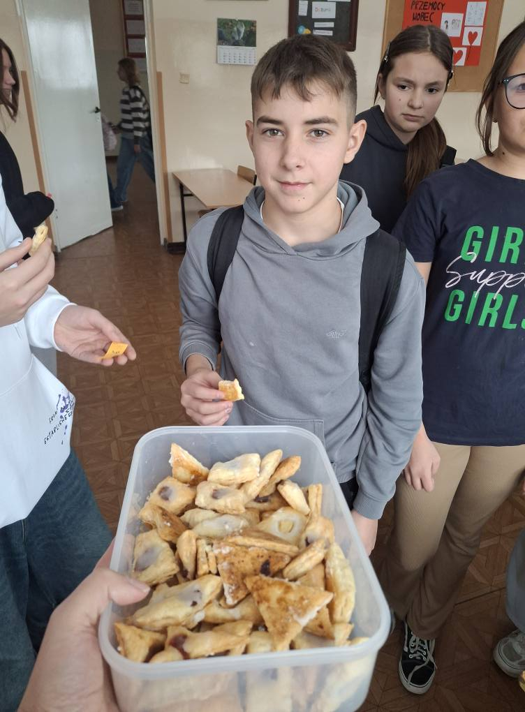 Całe wydarzenie zostało przygotowane przez Samorząd Uczniowski, który zadbał także o slodki akcent dnia. Przedstawiciele samorządu własnoręcznie upiekli w domu pyszne matematyczne ciasteczka, którymi częstowani byli uczniowie.