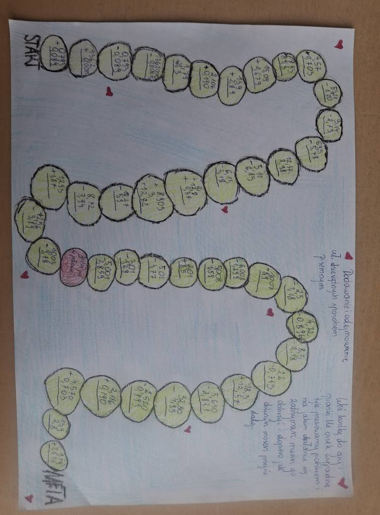 Dodatkowo klasy 6 podczas lekcji matematyki przygotowywały własne gry matematyczne, które były okazją do kreatywnej zabawy i utrwalania wiedzy w atrakcyjny sposób.