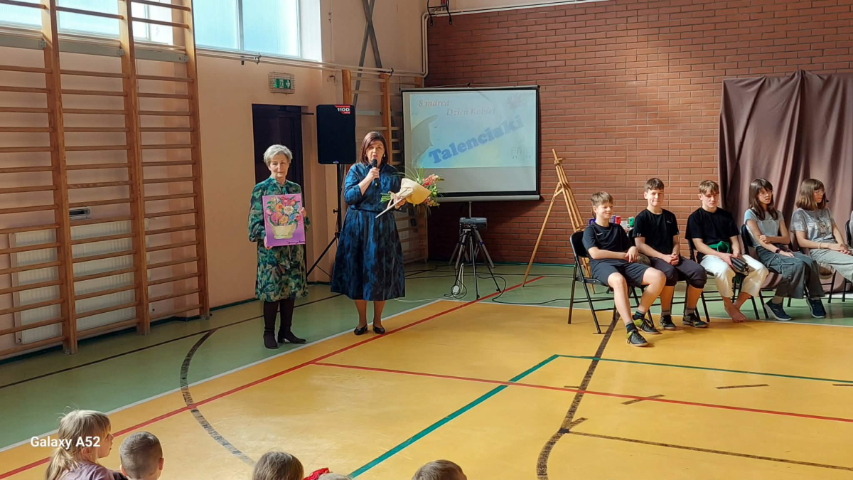 Jako, że 8 marca przypadał w tym roku w niedzielę, szkolne obchody Dnia Kobiet miały miejsce w poniedziałek 9 marca. W anturażu zaimprowizanego studia telewizyjnego goście (uczniowie) wymyslonego na te okoliczność progamu "Talenciaki" fikcyjnej TV Lubostroń prezentowali dlaPań swoje różnorodne talenty - malowanie "na żywo" obrazu, pokaz karate, taniec współczesny, śpiew, K-pop, żonglerka piłką nożną. Nie zabrakło symbolicznym upominków dla każdej z Pań, a prezentem głównym był - wręczony tradycyjnie na ręce Pań Dyrektor - namalowany podczas programu bukiet kwiatów.